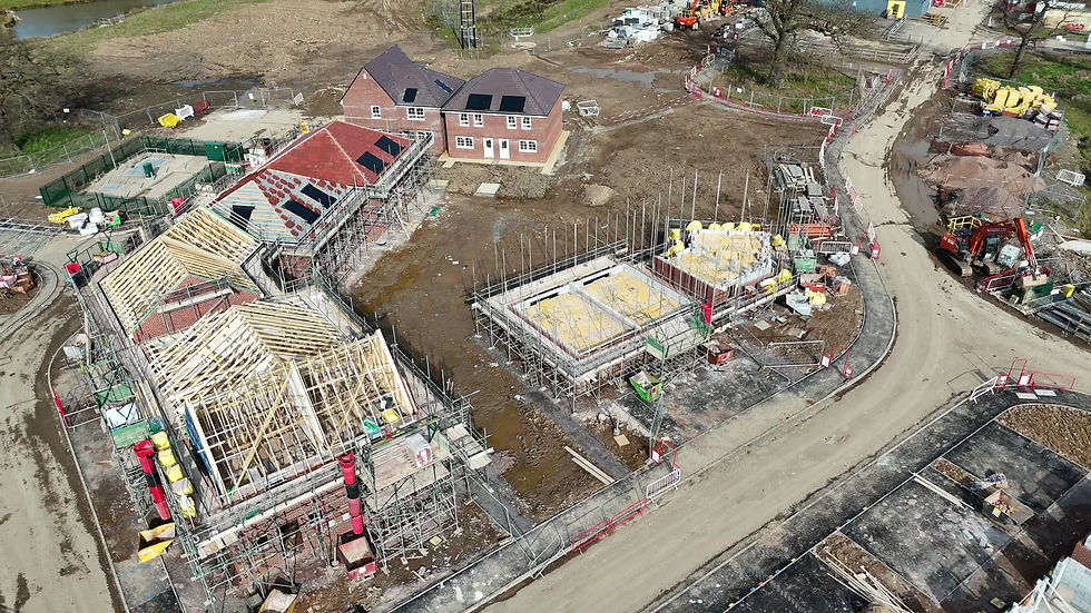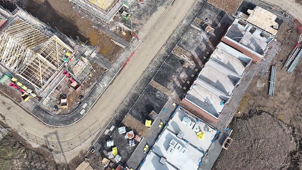 Aerial - Drone UK Site Build Half Builds & Foundations